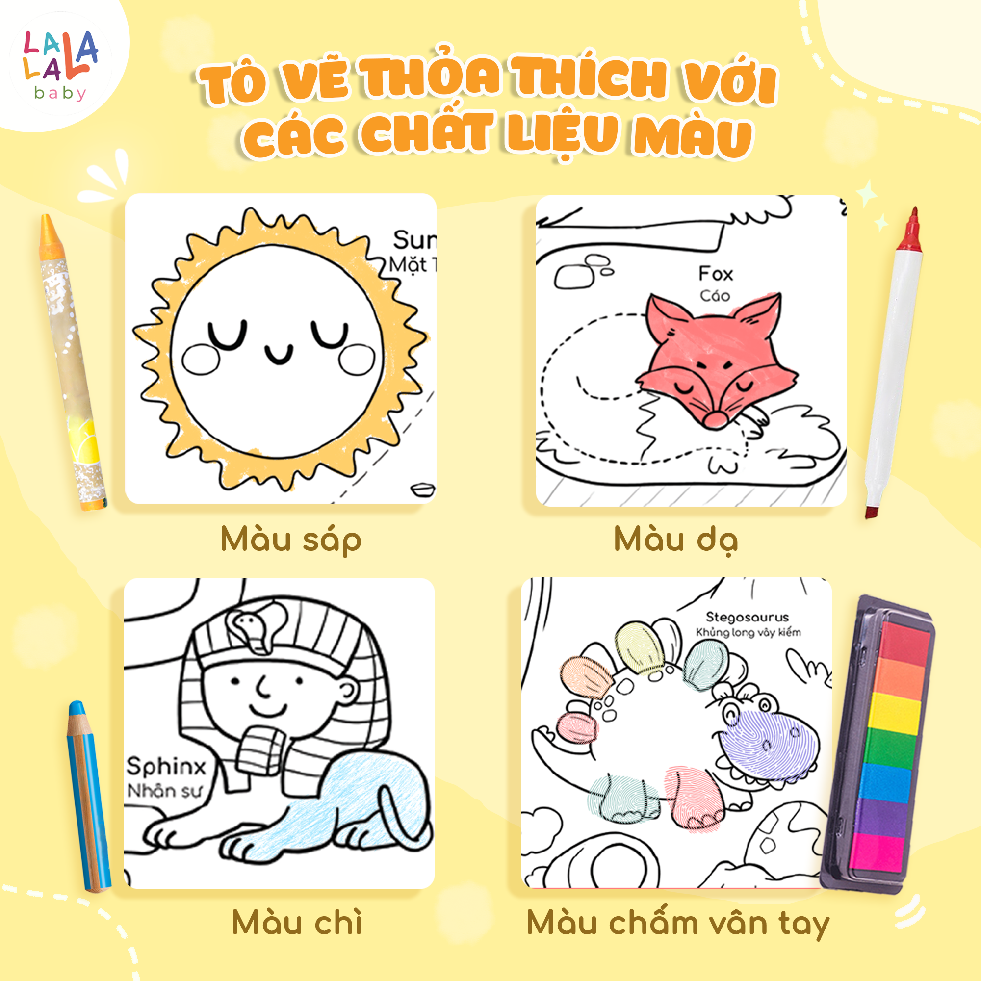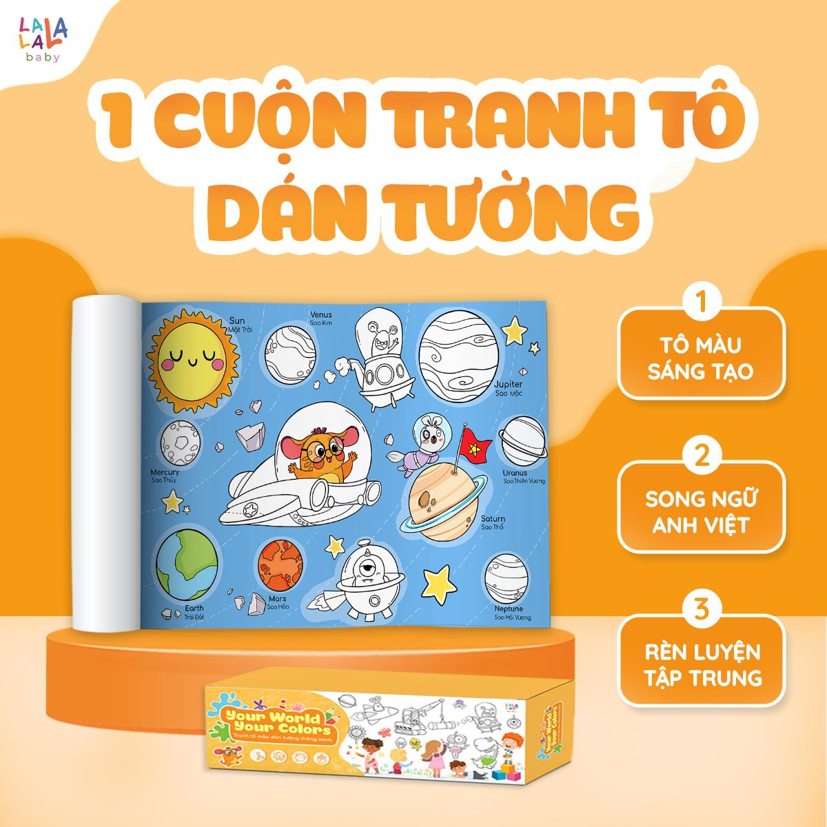 Tô vẽ là hoạt động yêu thích của các bạn nhỏ, một tờ giấy A4 có thể là chưa đủ đối với các hoạ sĩ nhí nên đôi khi bé thích vẽ lên tường, bàn ghế khiến ba mẹ đau đầu. Tranh tô màu dán tường của nhà Lalala Baby sẽ giúp be mẹ giải quyết nỗi lo bẩn tường, nhưng vẫn giữ được niềm đam mê cho bé.