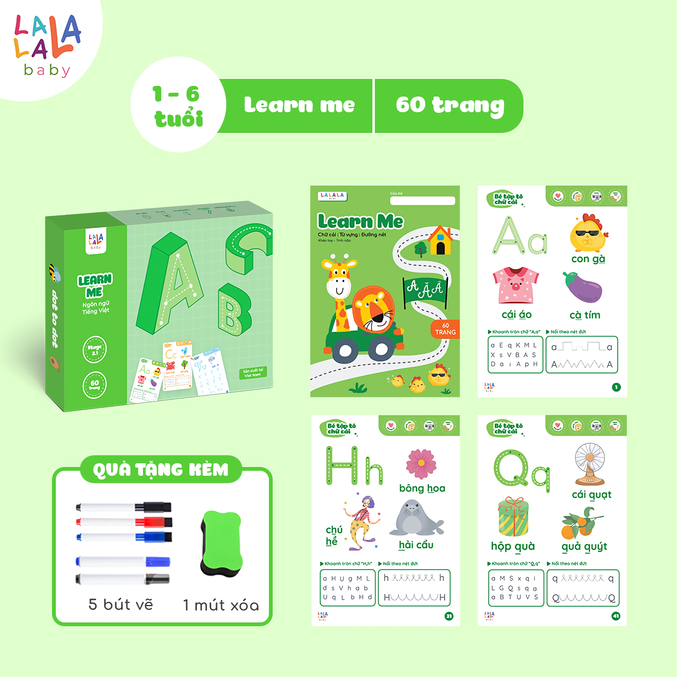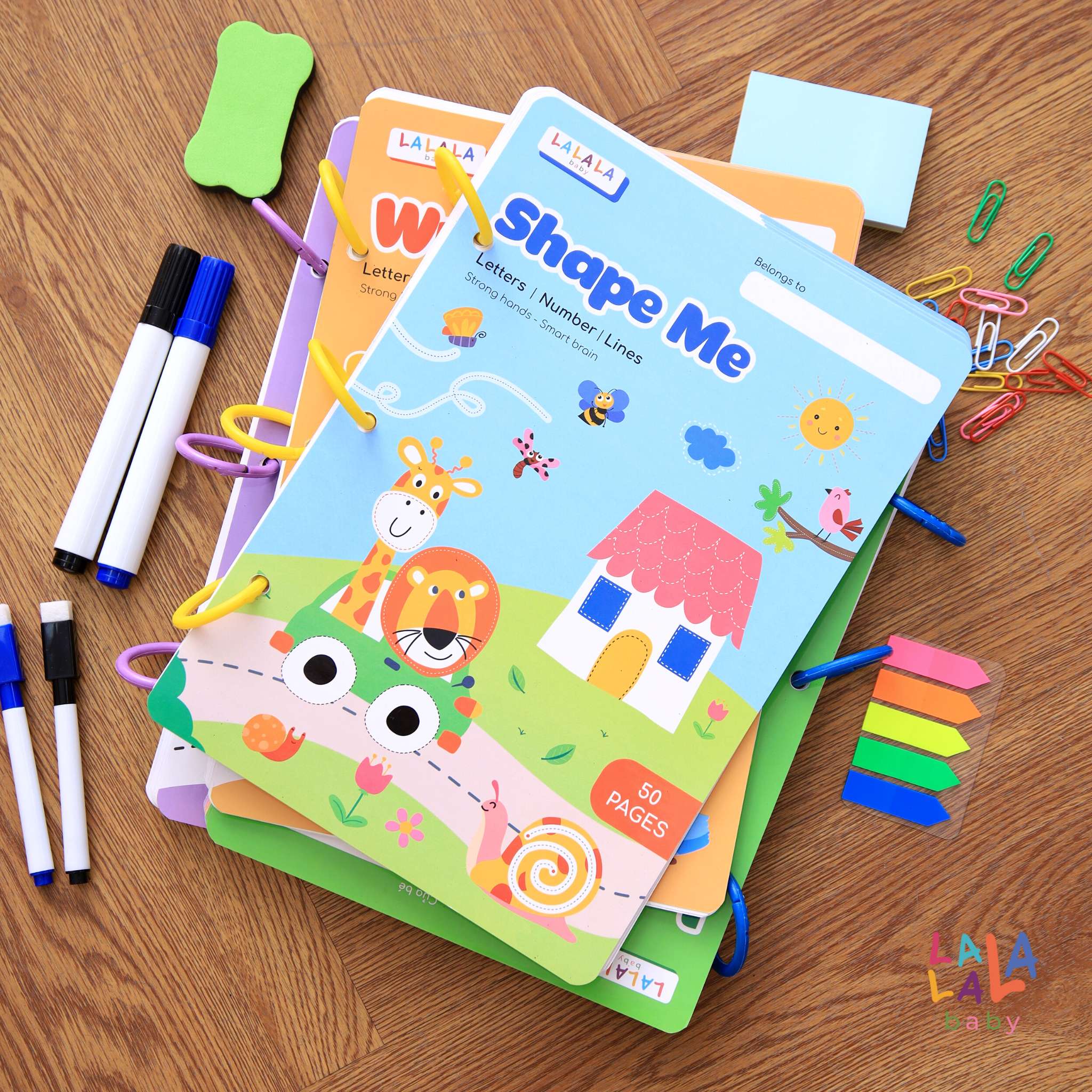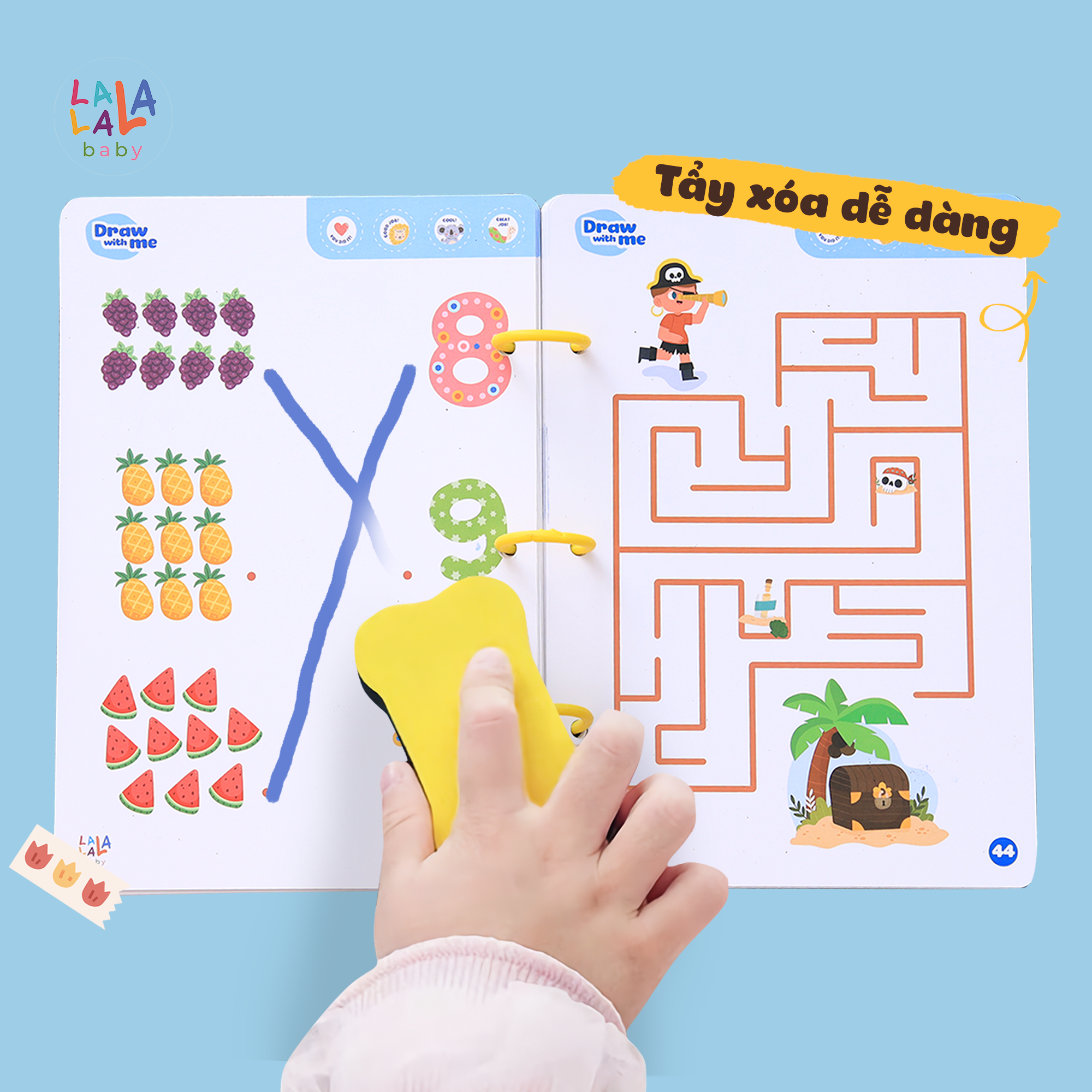 - Sách tô xoá thông minh với 4 chủ đề cùng các hình minh hoạ bắt mắt, có các nét đứt liền để bé tô theo